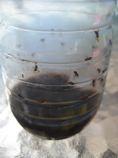 Harvest time seems to draw a swarm of fruit flies into my kitchen, which I hate! I was getting driven to distraction with them. They are too tiny to swat and I don’t want to spray poison in my kitchen. So, Ammon rigged up a simple fruit fly trap for me that is working so well!
