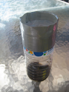 3. Use masking or duct tape to close off 3/4 of the bottle mouth opening.